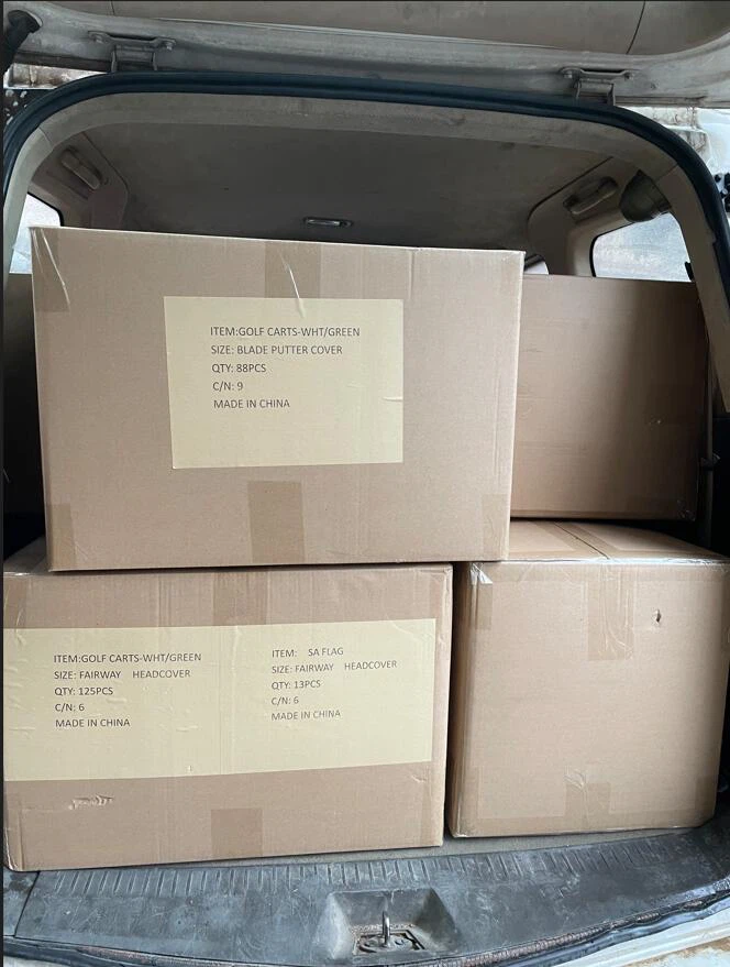 کھیپ کی تفصیلات میں گولف ووڈ ہیڈ کوور، پٹر آئرن ہیڈ کوور، مالٹ ہیڈ کوور شامل ہیں۔